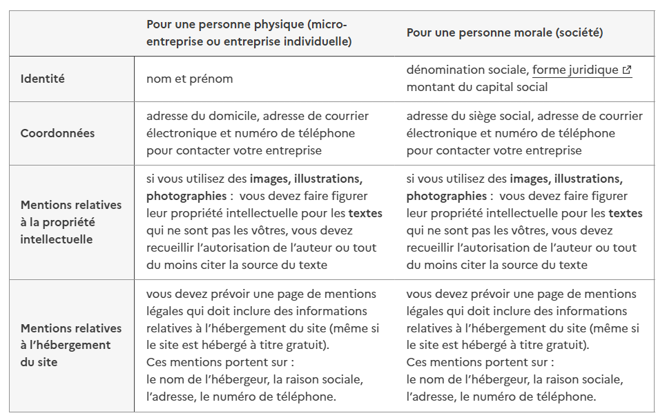 Pour vous micro-entrepreneur ou dirigeant à la tête d’une société, veuillez trouver ci-dessous la liste des mentions obligatoires à respecter sur votre site internet.